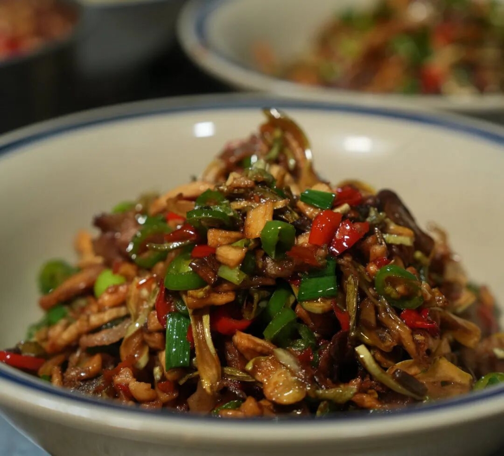 土豆擂辣椒、爆炒鸡也是每桌必点的经典,都是最地道的农家味道。