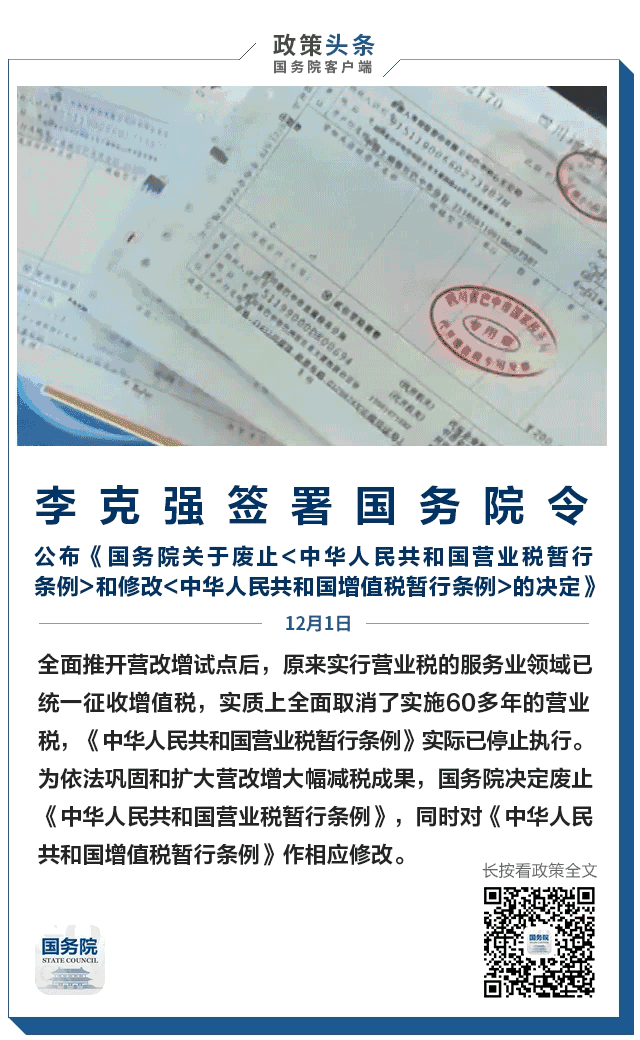 重磅!实施60多年的营业税正式废止