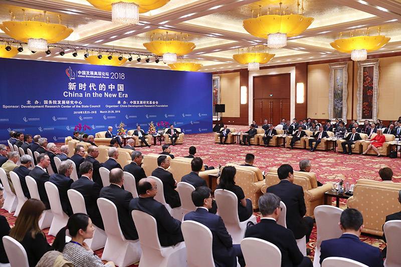 国务院总理李克强26日在北京会见出席中国发展高层论坛2018年年会的外方代表并同他们座谈。