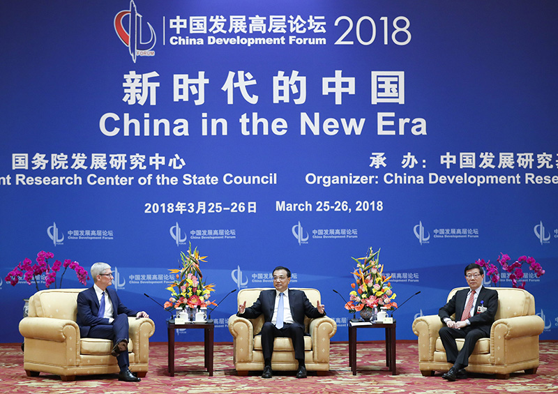 苹果公司首席执行官库克、株式会社日立制作所取缔役会长中西宏明、史带投资集团董事长格林伯格、谷歌公司首席执行官皮猜、剑桥大学校长杜思齐和教授诺兰、高通公司首席执行官莫伦科夫等发言,就他们关心的问题向李克强提问。李克强一一作答,并同他们深入交流。