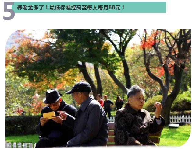 人社部和财政部近日印发《关于2018年提高全国城乡居民基本养老保险基础养老金最低标准的通知》,决定自2018年1月1日起,全国城乡居民基本养老保险基础养老金最低标准提高至每人每月88元,即在原每人每月70元的基础上增加18元。