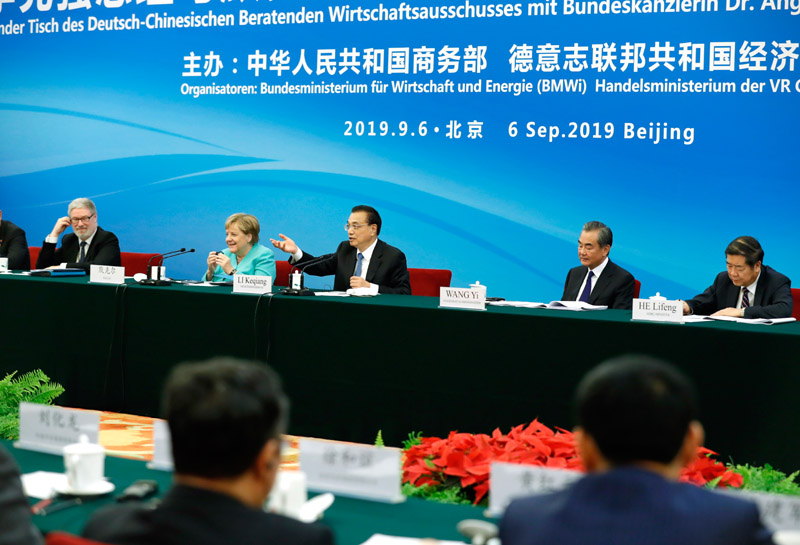 默克尔表示,德中经贸合作广泛深入。随着中国改革开放的推进,一些德国企业成为中国新开放领域对外合作的范例。德方愿同中方共同维护多边主义和自由贸易体制,加强职业教育等领域合作,共同商讨制定自动驾驶、人工智能等新兴经济领域国际标准。德方欢迎中国企业对德投资,将努力推动2020年德国担任欧盟轮值主席国期间完成欧中投资协定谈判。