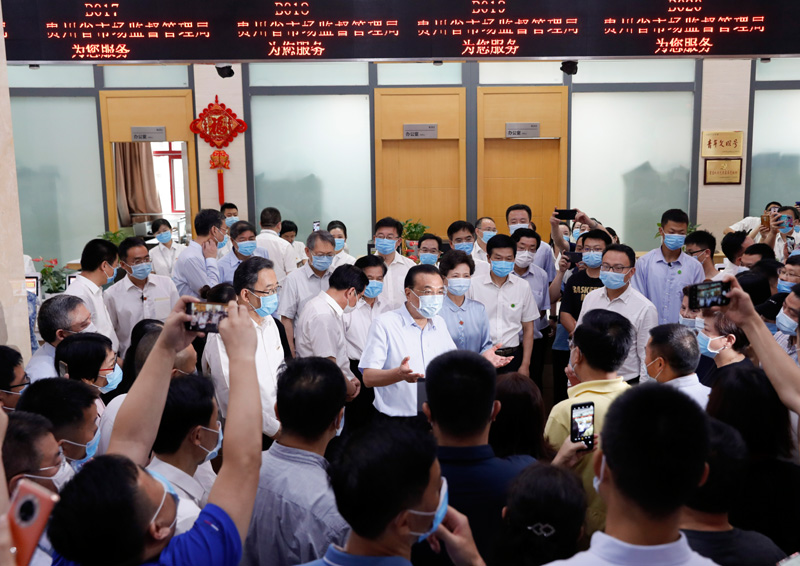 李克强7月7日考察贵州省政务服务中心,详细了解深化“放管服”改革、精简行政权力、推行一网通办等做法。总理接连来到办理工商、社保、环评等事项的柜台,询问群众办事时间是否短了、异地办理是否顺畅。李克强与现场的中小微企业人员交流,大家纷纷表示实实在在享受到了减税降费等政策实惠。针对企业反映授信额度低、融资难,李克强说,一定要解决好中小微企业、科技型企业融资难题,为他们的发展助力。要以改革开放开拓西部更大回旋余地。