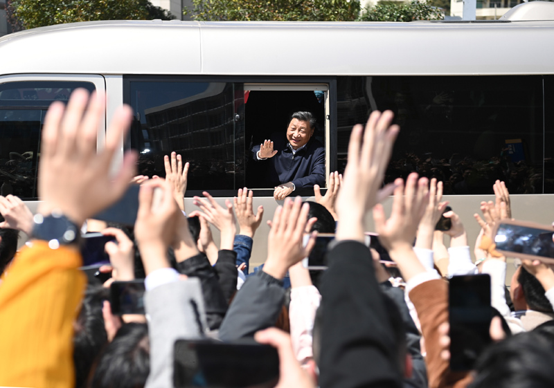 3月22日至25日,中共中央总书记、国家主席、中央军委主席习近平在福建考察。这是25日上午,习近平在福州闽江学院考察时,向师生们挥手致意。新华社记者 燕雁 摄