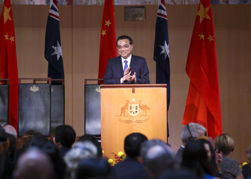 李克强在随后的演讲中补充了另一个数字:2016年,中国对澳大利亚的贸易逆差接近500亿美元。“我们当然不希望看到贸易不平衡,但我们坚信,解决贸易不平衡要通过扩大贸易,而不能关起门来。”李总理说。