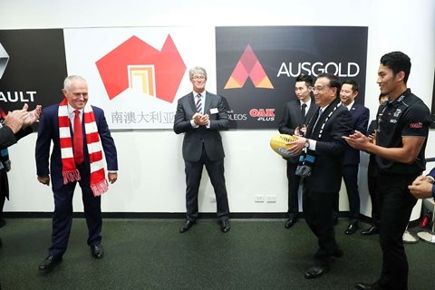 观看澳式足球比赛,在李克强总理此次出访行程中备受关注。在两天前的欢迎午宴上,特恩布尔和反对党领袖肖顿都向李总理推荐自己故乡的球队。而在25日下午的致辞中,特恩布尔再次表示,他非常高兴能在自己的故乡、悉尼天鹅队的主场,和李克强总理一起观看本赛季的首场比赛。“这显示出澳中两国的合作正在拓展到越来越广阔的领域,包括在体育人文领域的合作。”