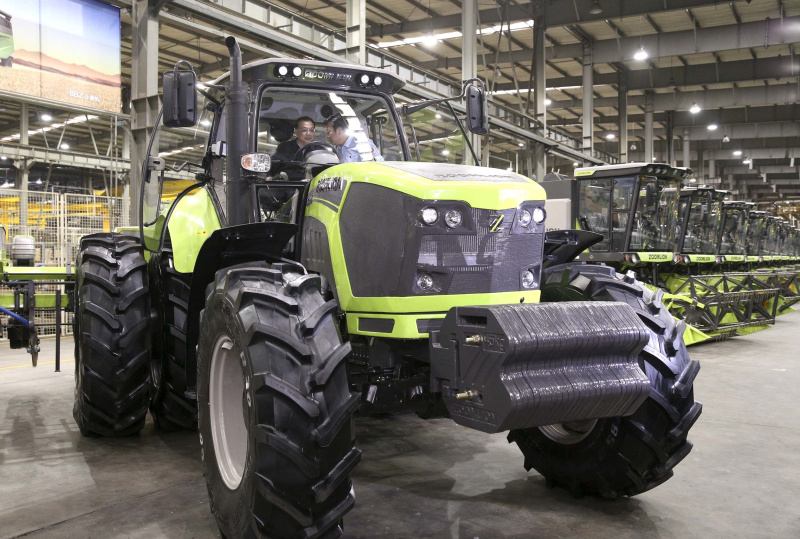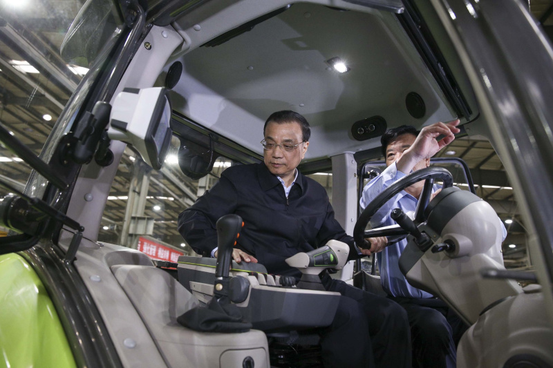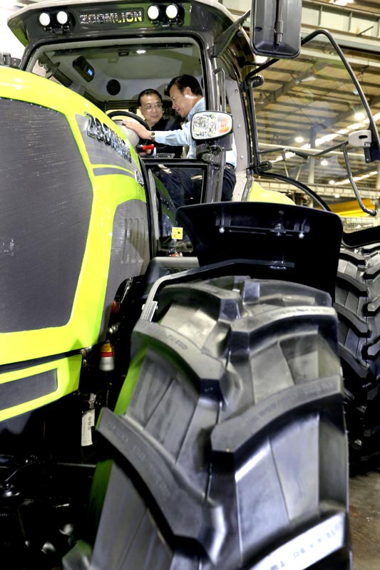 【李克强登上国产大马力拖拉机】足有一人高的轮子、深耕可达半米,李克强8日在中联重科开封工业园登上一辆自主生产的230马力拖拉机。总理过去考察东北时提出要在制造大马力拖拉机上实现突破。此后国产拖拉机一路加“马”。总理说,农业现代化需要大马力拖拉机,“中国制造2025”更需要大马力发动机。