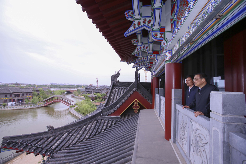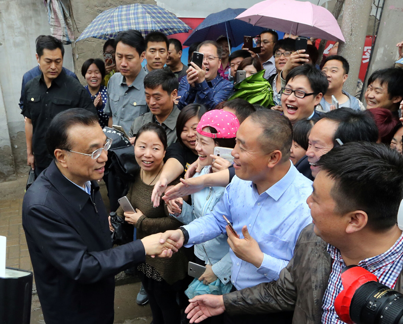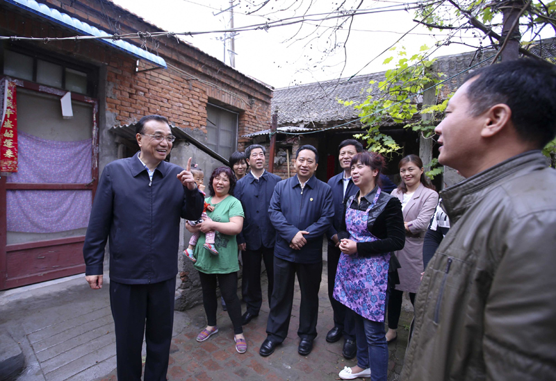 【李克强冒雨察看“新”“旧”开封】李克强8日冒着淅淅沥沥小雨,考察开封旧城改造工作。开封作为历史古都,保护古城风貌与改善老城区居住环境任务同样繁重。总理登高察看古色古香的改造街区后,又走入老城区的棚户中看望居民。他说,古城修复是历史责任,而老城区居住环境改善是迫切需要,二者不可偏废。