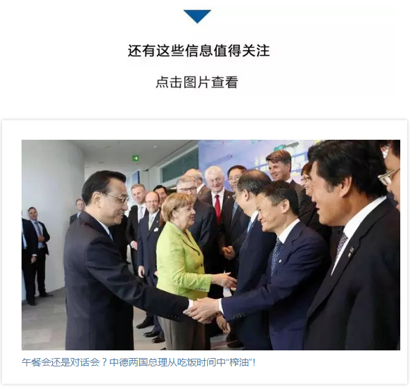 克强总理一直心系中小企业,多次为中小企业站台。这次出访,他在演讲中好几次强调要强化中小企业合作,还特意参加了中欧中小企业合作对接会。总理说,要为中欧双方中小企业,特别是成长型企业的创新和敬业精神点赞。