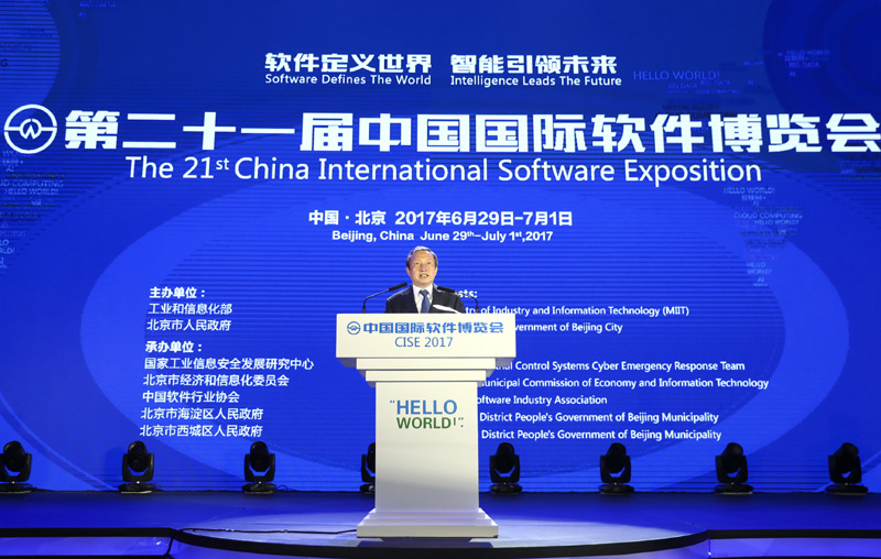 6月29日,第二十一届中国国际软件博览会在北京举行,中共中央政治局委员、国务院副总理马凯出席并讲话。新华社记者 谢环驰 摄