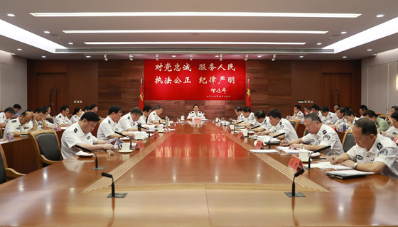 7月21日,国务委员、公安部党委书记、部长郭声琨主持召开部党委扩大会议,传达学习全国金融工作会议、中央财经领导小组第十六次会议精神,传达学习《中共中央关于修改中国共产党巡视工作条例的决定》精神,研究公安机关贯彻落实意见,研究部署当前工作。(图:张建鑫)