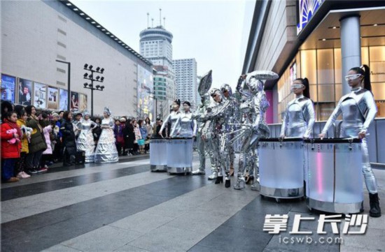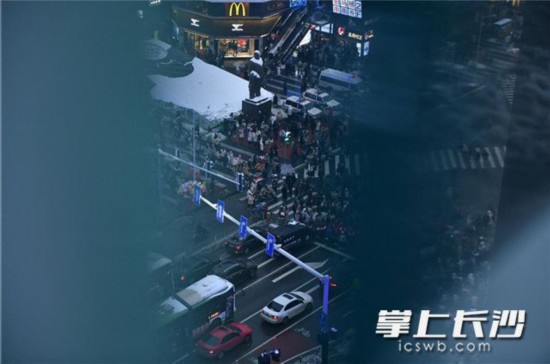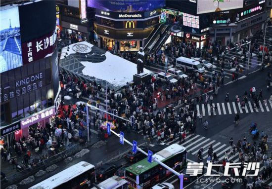 雪后长沙黄兴路步行街人流如织 跨年夜五一商圈人气旺