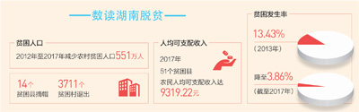 党的十八大以来,湖南省认真贯彻落实习近平总书记关于扶贫工作的重要论述,扎实推进精准扶贫精准脱贫基本方略落实落地,将精准要求贯穿脱贫攻坚全过程。从2014年起连续7次开展贫困人口建档立卡动态调整。因地因村因户施策,着力做到一村一个脱贫规划、一村一支攻坚队伍,一户一本台账。着力在体制机制、工作方法、脱贫路径等方面积极探索,蹚出一条“四跟四走”产业扶贫发展新路子。完善贫困退出验收细则,强化脱贫退出基层责任,实行贫困退出“三签字”,确保脱贫退出标准达到、程序完整、结果真实、群众认可、社会认同。贫困地区“行路难、饮水难、用电难、通信难、就医难、上学难”等问题得到改善,贫困群众获得感和幸福感大幅提升。