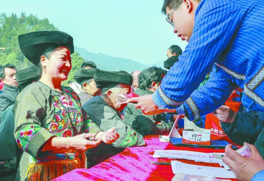 1月17日,花垣县十八洞村举行产业收益金发放暨苗年节活动,让全村群众分享丰收喜悦。2018年,该村猕猴桃丰收,村民共收益88.5万元。龙艾青 摄