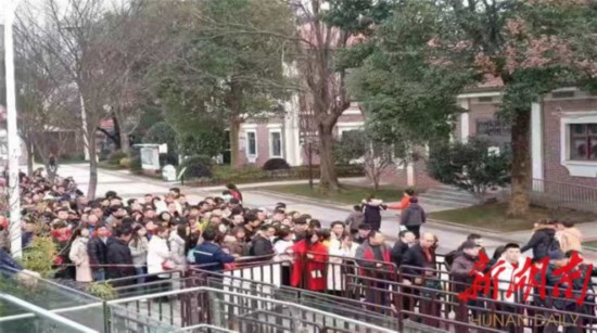 图说:2月24日,由于客流量大,当天17时30分许,在长沙地铁2号线橘子洲站2号进出口外面,从景区准备坐地铁返程的游客已在站外排起了长达五六十米的长队。记者陈月红摄