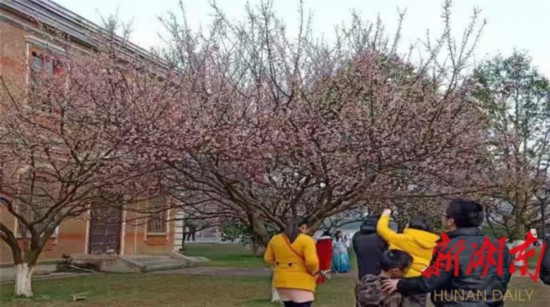 图说:2月24日,在橘子洲景区梅花盛开,吸引不少游客驻足。记者陈月红摄