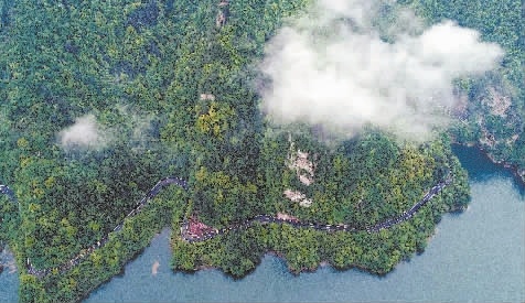 5月8日,航拍张家界市武陵源区索溪峪景区旅游公路。近年来,武陵源区大力改善景区内部旅游交通环境,一条条宽敞、平坦的旅游公路在绿树丛中穿行,为游客提供了“畅、安、舒、美”的交通服务保障。吴勇兵 摄