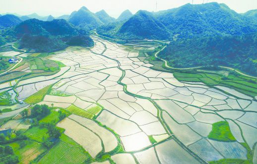 6月2日,永顺县松柏镇三坪村,刚种下秧苗的稻田犹如一块块镜面镶嵌在万峰丛中。松柏镇土地富饶,盛产优质稻米,素有湘西“粮仓”之称,获得全国农产品地理标志的松柏大米主要产自该镇。2018年,该镇水稻种植面积1.4万亩, 年产松柏大米1.12万吨,产值4500万元。湖南日报记者 童迪 新湖南客户端记者 朱玉文 摄影报道