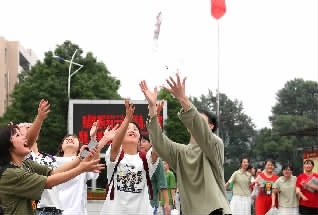 考场门前成为一片鲜花与微笑的海洋,不少考生刚刚踏出考场,就已在盘算这个轻松的暑假怎么度过了。