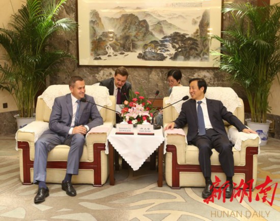 7月16日下午,省委副书记、省长许达哲在长沙会见了俄罗斯联邦总统驻伏尔加河沿岸联邦区副全权代表马什科夫采夫一行。 湖南日报·华声在线记者 赵持 摄