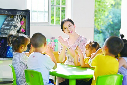9月7日,资兴市白廊镇龙溪学校,骆燕老师在教孩子们唱歌。今年24岁的骆燕2016年公费师范毕业后,一直在龙溪学校幼儿园任教。2007年起,资兴市启动师范生免费教育工作,积极探索农村中小学、幼儿园教师培养新机制,鼓励优秀初中毕业生报考师范专业。2012年至今,全市已有343名公费师范生走上农村讲台,成为该市农村教育的中坚力量。钟镭 朱孝荣 摄影报道
