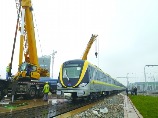 10月16日上午,长沙地铁5号线首列车顺利抵达长沙地铁水渡河车辆段。通讯员供图