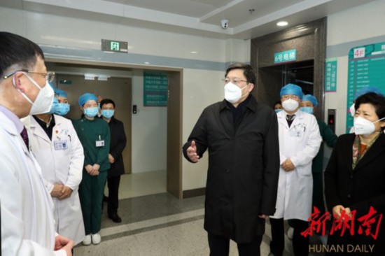 (1月25日上午,省委书记杜家毫在中南大学湘雅二医院督导检查疫情防控工作。记者罗新国 摄)