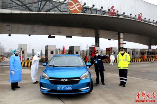 何海曦,长沙西路政大队工作人员,正在长沙西收费站协助医护人员测量过往司乘人员体温、引导车辆。作为一名共产党员,他充分发挥党员先锋模范作用,从大年三十至今一直坚守在“抗疫保畅”一线。他的妻子是湘雅三医院感染科一名医护人员,从1月20日至今仍奋战在抗击疫情一线未曾回家,留下家中两个年幼的孩子由年迈的父母帮忙照顾。当两个孩子打来视频电话,哭闹着要爸爸妈妈回家时,坚毅的他偷偷红了眼眶。