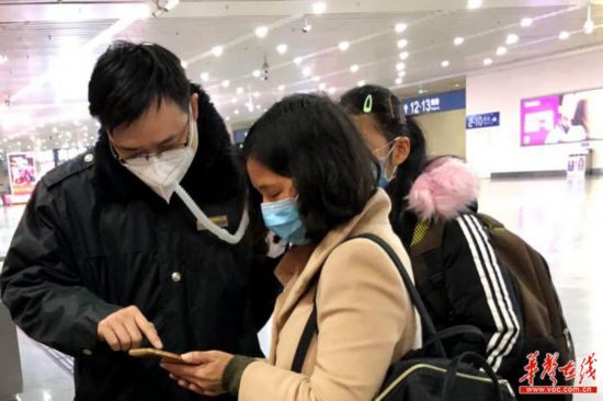 米武,长株潭城际先锋站站长,正在为乘客测量体温。疫情发生以来,他带领先锋站全体人员坚守岗位,严格落实上级要求。对于站房消毒,不放过任何一个角落。同时,他协调各单位将所属的设备定期进行清理、杀菌。由于米武的“唠叨”,先锋站同事看到米武都学会抢答了:“好的、洗手、消毒、喷酒精!”