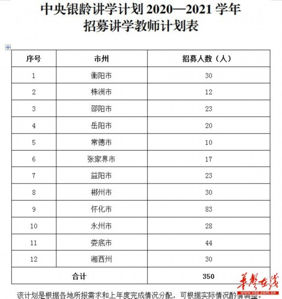近日,湖南省教育厅发布通知称,湖南将实施银龄讲学计划,招募350名年龄不超过65岁、身体健康、教育教学经验丰富的退休教师发挥余热。