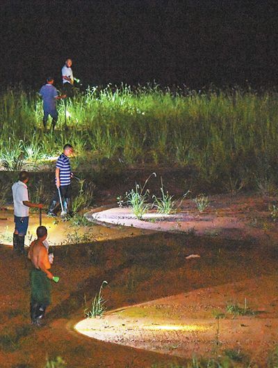 11日,湖南岳阳市君山区的洞庭湖大堤上,抗洪人员在巡堤查险。新华社记者 陈泽国摄
