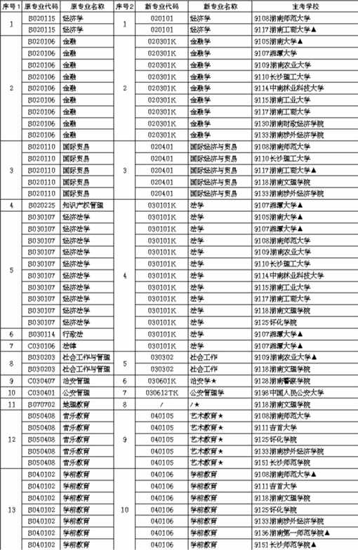说明:1.表中主考学校后标注了“▲”为承担相应专业社会考生主考任务的学校。2.表中新专业代码后加“K”的为国家控制专业。