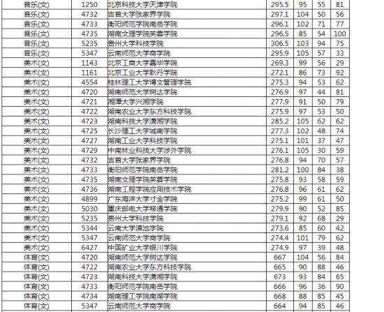 音乐类、美术类、舞蹈类、表演类(服装表演)、表演类(戏剧表演)、书法艺术和书法教育类的综合排序分为高考文化成绩(含政策性加分)×30%+专业统考成绩×70%,结果保留1位小数。体育类、编导类、播音与主持艺术类、摄影摄像类的综合排序分为高考文化成绩(含政策性加分)+专业统考成绩。体育艺术类高考文化成绩(含政策性加分)和专业统考成绩须分别达到本批次相应科类录取控制分数线。另外,部属和外省属院校投档时,档案分中不含考生地方性项目加分。(记者 黄京)