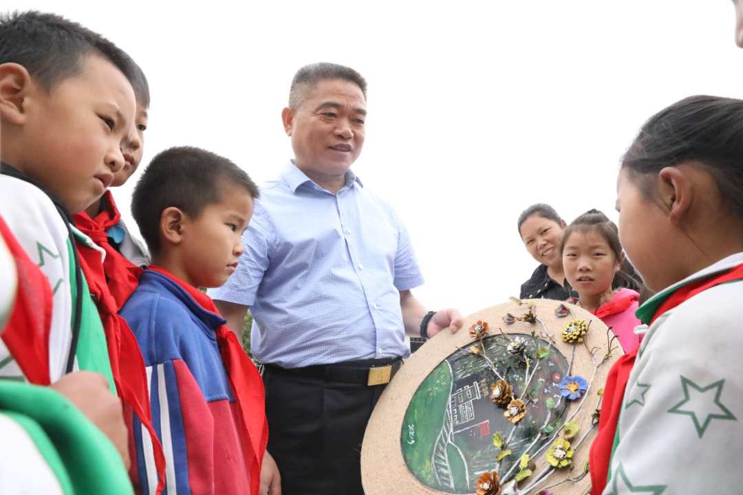 隆回县虎形山瑶族乡草原村小学师生自制手工画,送给王永红,感恩党的好政策,让他们搬入到宽敞明亮的新教室。米扬摄