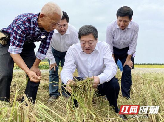 杜家毫在长沙县黄花镇银龙村荷叶塘组检查督导粮食秋收工作。