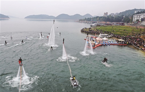 10月31日,演员在东江湖进行水上嘉年华表演。当天,2020年湖南(秋季)乡村文化旅游节在资兴市白廊镇开幕。此次节会主题为“锦绣潇湘、水映白廊”,旨在深入践行“两山”理念,大力发展乡村文化旅游,助推乡村振兴,助力脱贫攻坚。系列活动将持续至11月8日。