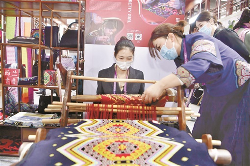记者在湖南非遗展馆看到,湘绣、桃源刺绣、土家族织锦技艺、侗锦织造技艺、大布江拼布绣、土家族刺绣、湘西苗绣、花瑶挑花、苗族挑花,9个锦绣类非遗代表项目互相媲美,向海内外嘉宾和客商展示湖湘文化魅力。