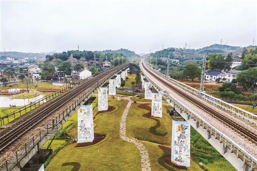 《山乡巨变》连环画画在了途经清溪村的铁路桥墩上。通讯员 摄