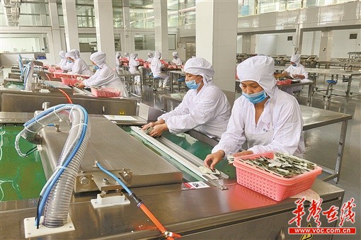 (新晃老蔡食品有限责任公司牛肉加工车间。陆晓鹏 摄)