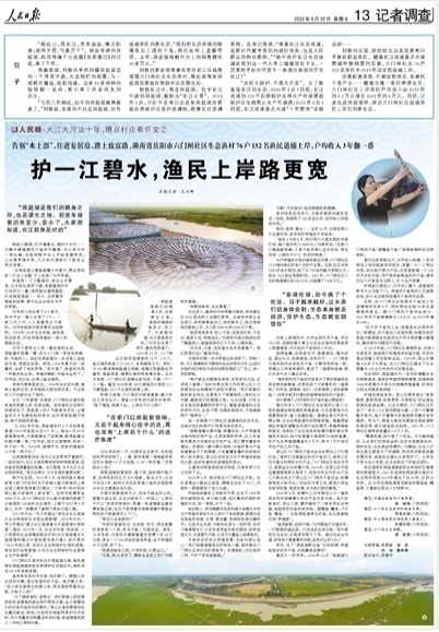 附:人民日报“记者调查”整版报道《护一江碧水,渔民上岸路更宽(人民眼·大江大河这十年,蹲点村庄看巨变②)》