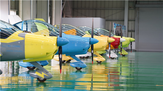 株洲通用航空展,株洲造的“阿若拉”轻型运动飞机拉出彩色的烟雾,湛蓝的天空下,尤为灵动。