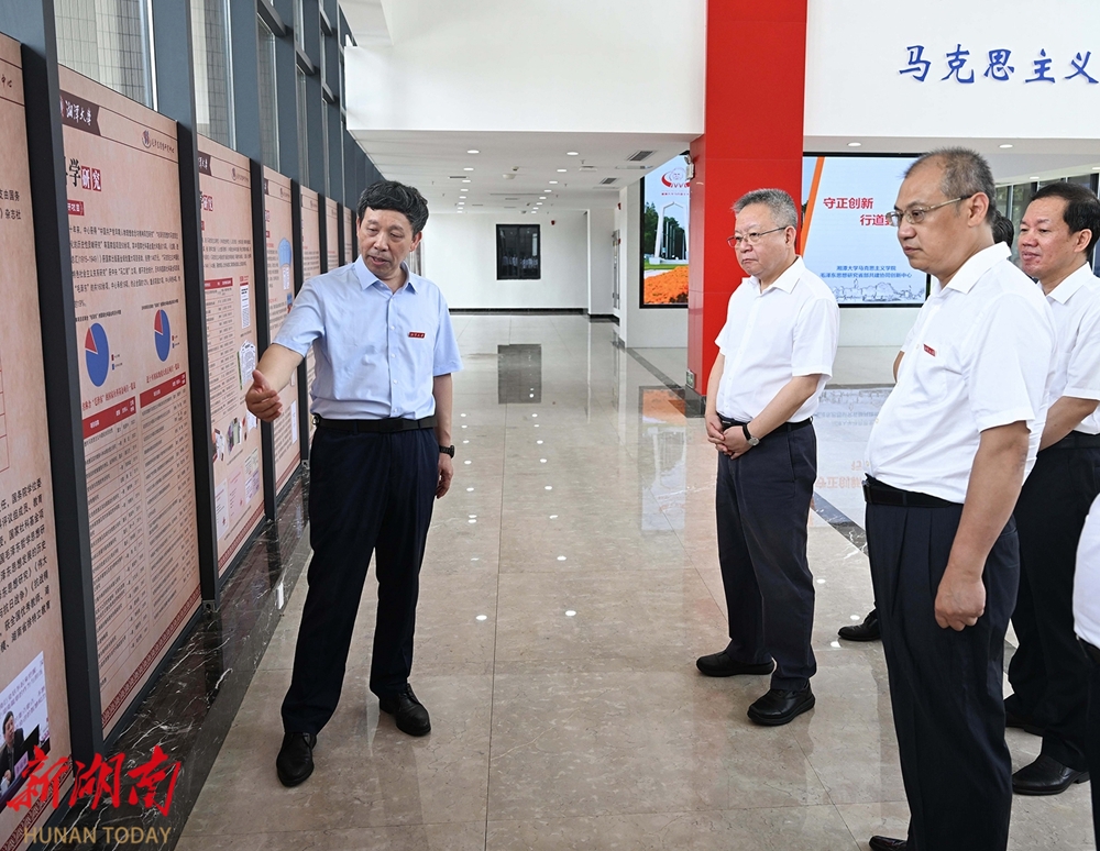 沈晓明来到数学与计算科学学院、法学学部、湖南先进传感与信息技术创新研究院,调研“双一流”学科建设、基础科学研究、特色法学教育、科技成果转化等情况。他强调,要顺应发展趋势,立足现实需要,加强基础研究和应用研究,驱动人才培养,强化人才支撑。要促进产学研用深度融合,通过市场化手段推动更多科研成果就地转化为现实产品和产业。