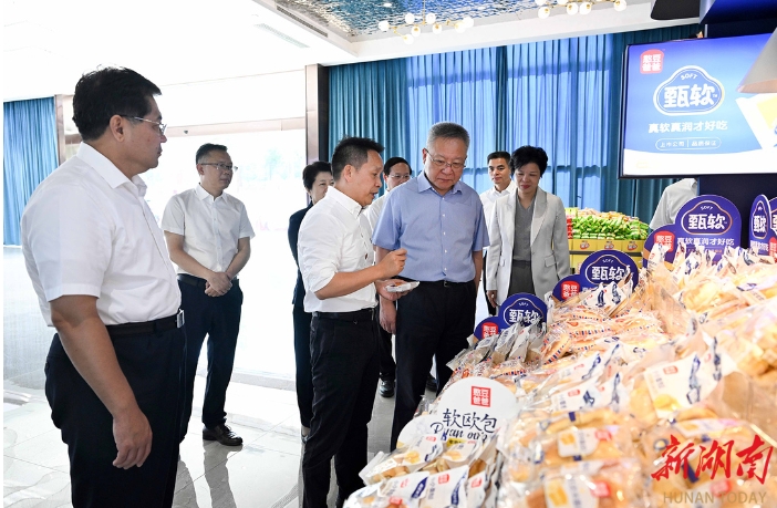 盐津铺子食品股份有限公司是全省最大的休闲食品生产企业。来到该公司,沈晓明现场察看产品展示,并询问了解产品研发、市场销售、品牌创建等情况,鼓励企业在研发体系全球布局中不断完善人才交流机制,持续提升研发创新能力,提升产品附加值;同时将产业链进一步延伸到田间地头,让更多农民成为企业发展的受益者。在劲仔食品集团股份有限公司、湖南麻辣王子食品有限公司,沈晓明察看企业标准化生产车间,了解生产经营、工艺创新、市场拓展等情况,鼓励企业深耕主业,持续做优做强产业品牌,带动更多就业。每到一处,沈晓明都叮嘱企业要严格落实食品安全主体责任,牢牢守住食品安全这条红线;相关部门要为企业发展创造更好的营商环境,让企业安心舒心生产经营。