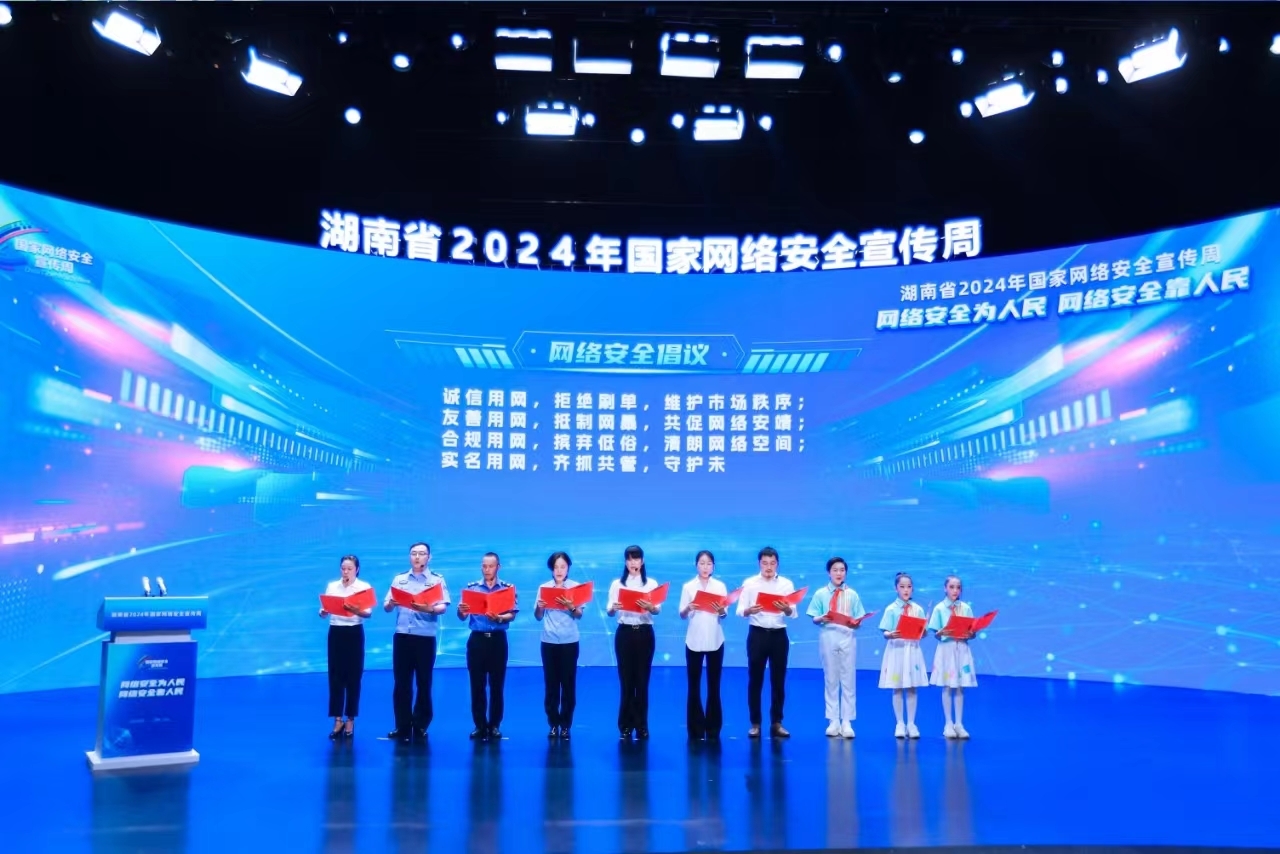 人民网长沙9月10日电 今天上午,湖南省2024年国家网络安全宣传周启动仪式在长沙市开福区举行。今年活动延续“网络安全为人民,网络安全靠人民”主题,通过开展丰富多样的网络安全主题项目,不断提升群众网络安全意识和技能。