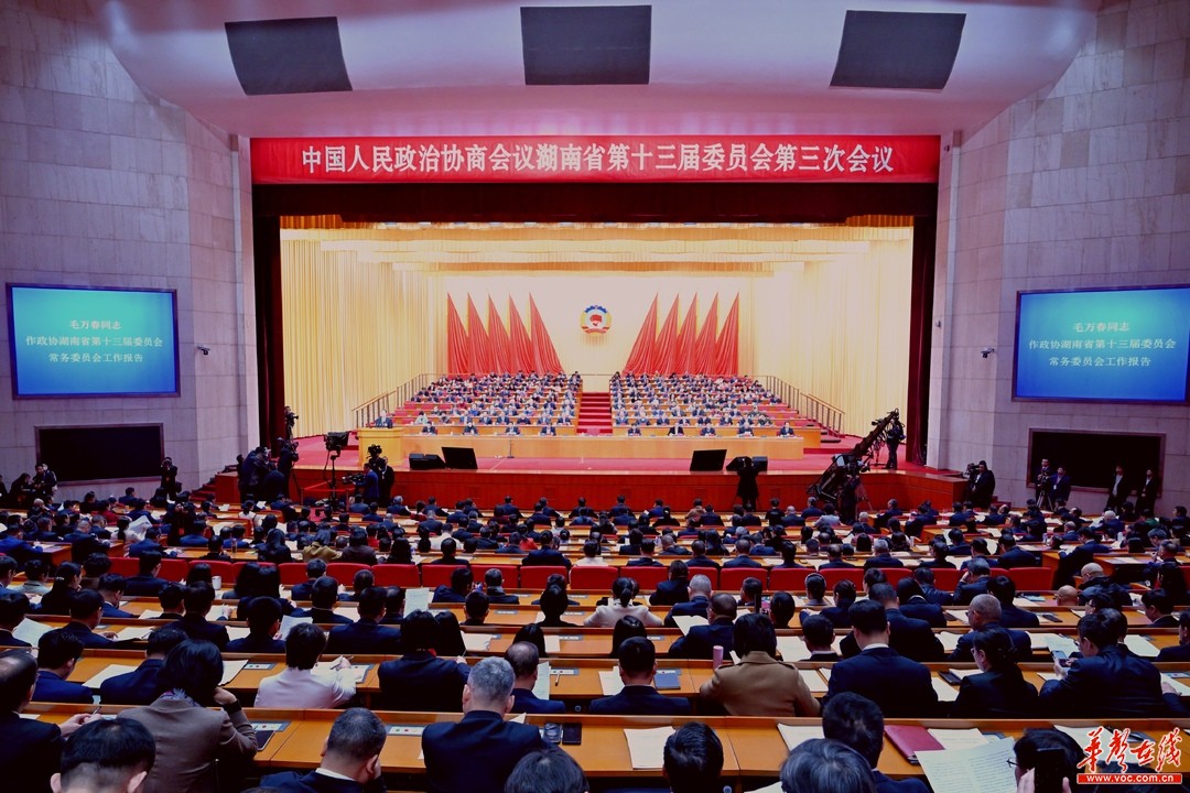1月13日上午,中国人民政治协商会议湖南省第十三届委员会第三次会议在省人民会堂开幕。来自全省各族各界、各条战线的省政协委员齐聚长沙,积极履行政治协商、民主监督、参政议政职能,为加快实现“三高四新”美好蓝图、奋力谱写中国式现代化湖南篇章尽政协之责、展政协之长、倾政协之力。(全媒体记者 邓晶琎 陈昂昂)