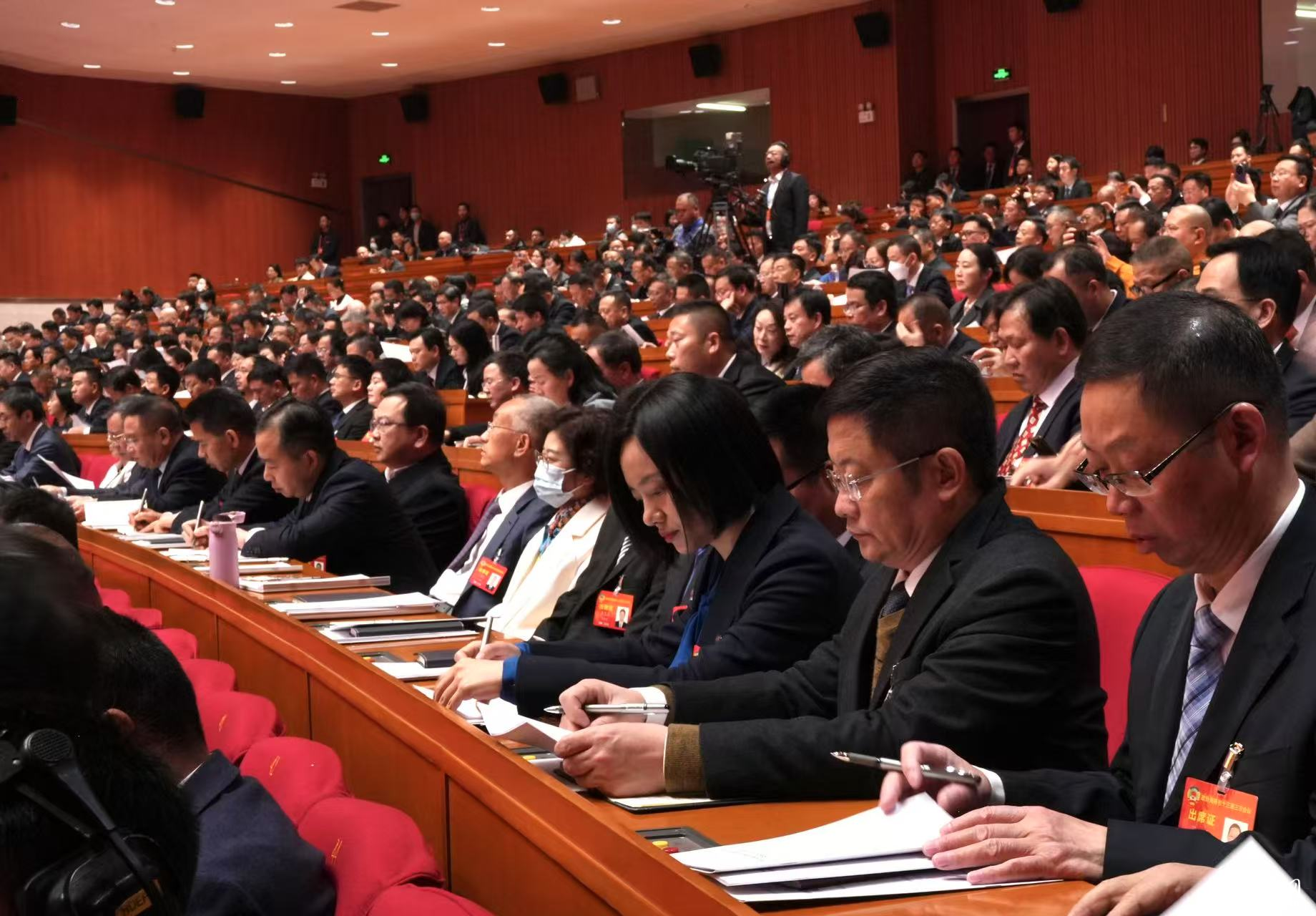 委员认真听取报告。人民网 刘汕摄