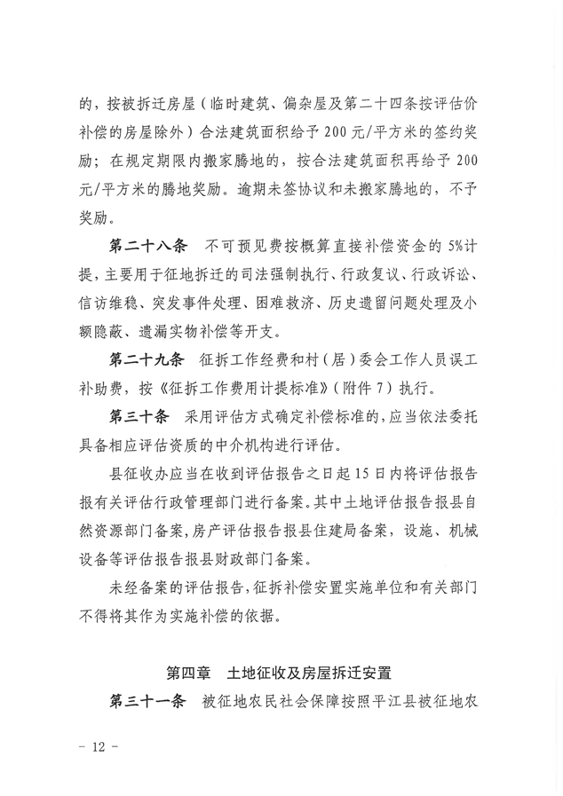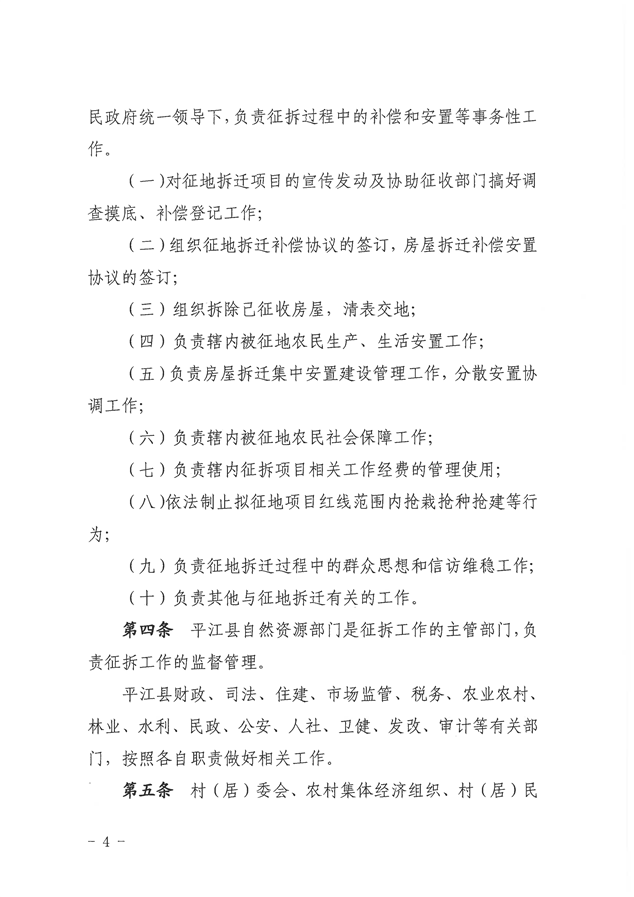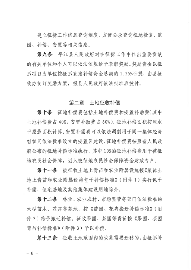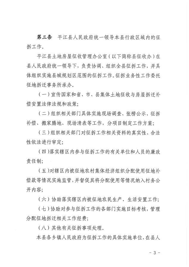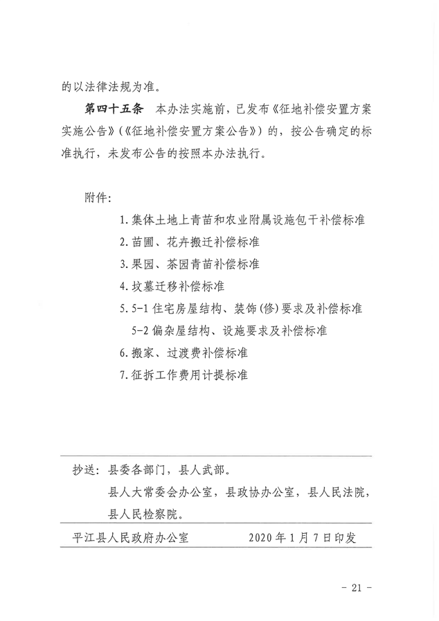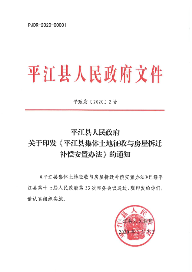平江县人民政府关于《平江县集体土地征收与房屋拆迁补偿安置办法》的通知(平政发〔2020〕2号)