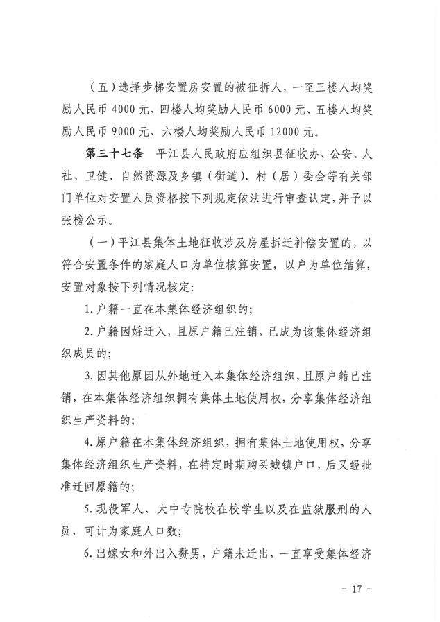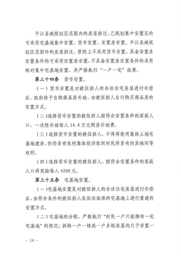 》》相关解读:关于《平江县集体土地征收与房屋拆迁补偿安置办法》的解读说明
