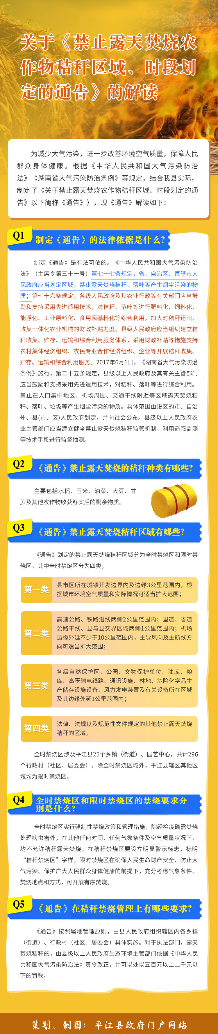 平江县人民政府《关于禁止露天焚烧农作物秸秆区域、时段划定的通告》