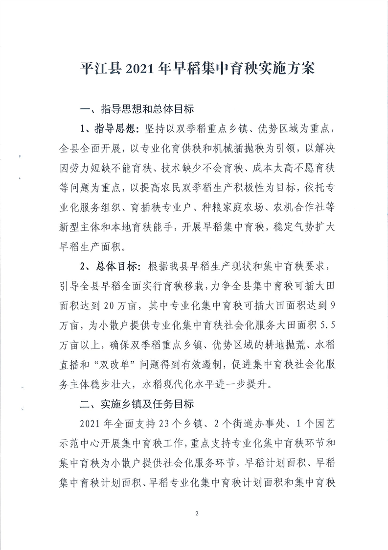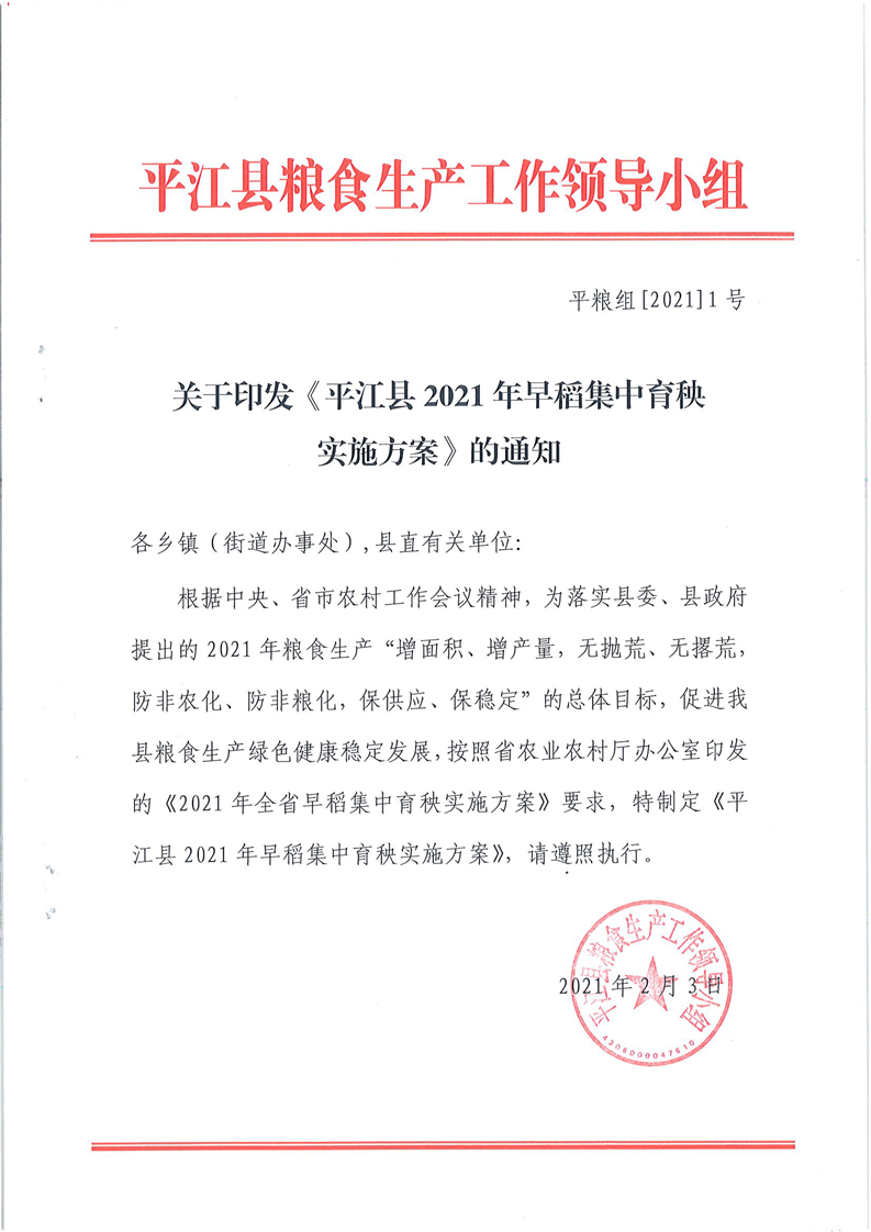 平江县2021年早稻集中育秧实施方案